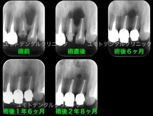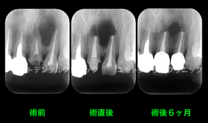 根管治療前、外科的歯内療法直後、術後6ヶ月